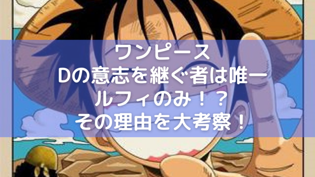 ワンピース ワンピース:Dの意志とは!?Dの意思を継ぐものは唯一ルフィのみ!?その理由を大考察! 2023年11月24日 漫画マニア なみこ ワンピースやキングダムなどの考察やまとめトリビアー漫画情報.info