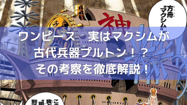 ワンピース ワンピース:3大兵器のひとつ・古代兵器プルトンは実は「マクシム」!?その考察を徹底解説! 2023年11月24日 漫画マニア なみこ ワンピースやキングダムなどの考察やまとめトリビアー漫画情報.info