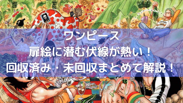 ワンピース ワンピース:扉絵に潜む伏線が熱い!回収された扉絵伏線、未回収の扉絵伏線、全部まとめて解説! 2023年11月24日 漫画マニア なみこ ワンピースやキングダムなどの考察やまとめトリビアー漫画情報.info